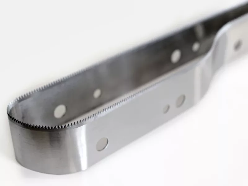 - Med en tång tar du tag i bladets ände närmast handtaget vid den trubbiga kanten (där det inte finns någon vass kant). Vänd den skärande delen bort från kroppen och handen.