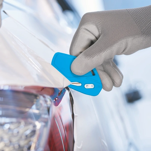 Det helt dolda bladet ger en mycket hög säkerhetsnivå för både användare och varor. Eftersom bladet är gjutet i plastkroppen behöver bladet inte bytas och det finns ingen direkt kontakt med skäreggen i något skede.