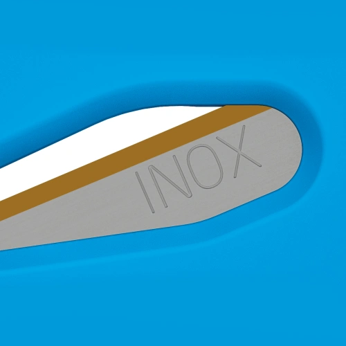 Själva bladet är tillverkat av rostfritt stål och belagt med TiN (titannitrid). Beläggningen minskar friktionen under skärningen och bidrar till att upprätthålla en jämn skärprestanda över tid.